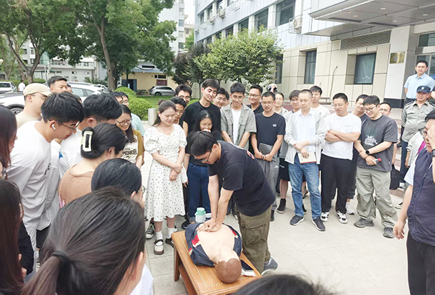 活動邀請北京衛(wèi)民安消防教育咨詢中心甘肅分中心石昊田教官進行了消防安全培訓,詳細講解了常見火災特點、公共滅火器材和應急逃生用具的使用。培訓結束后在化物樓前進行了消防滅火演練,展示了緊急情況下心肺復蘇、海姆立刻急救法和止血包扎等實用技術要點。隨后,大家積極參與演練實踐。