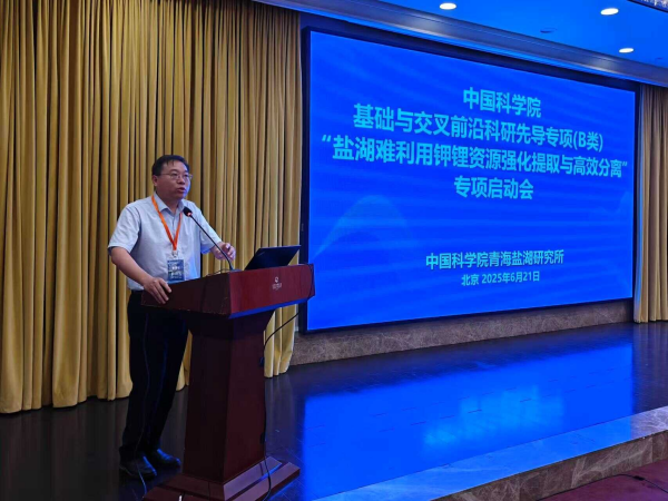 6月21日,中國科學(xué)院基礎(chǔ)與交叉前沿科研先導(dǎo)專項(xiàng)(B類)“鹽湖難利用鉀鋰資源強(qiáng)化提取與高效分離”(以下簡(jiǎn)稱“專項(xiàng)”)啟動(dòng)會(huì)在北京順利召開。包括兩院院士在內(nèi)的共10位專家受邀參會(huì)指導(dǎo),中國科學(xué)院可持續(xù)發(fā)展局、承擔(dān)單位項(xiàng)目組成員代表等40余人參加會(huì)議。啟動(dòng)會(huì)由中國科學(xué)院青海鹽湖研究所副所長(zhǎng)(主持工作)鄭詩禮主持。