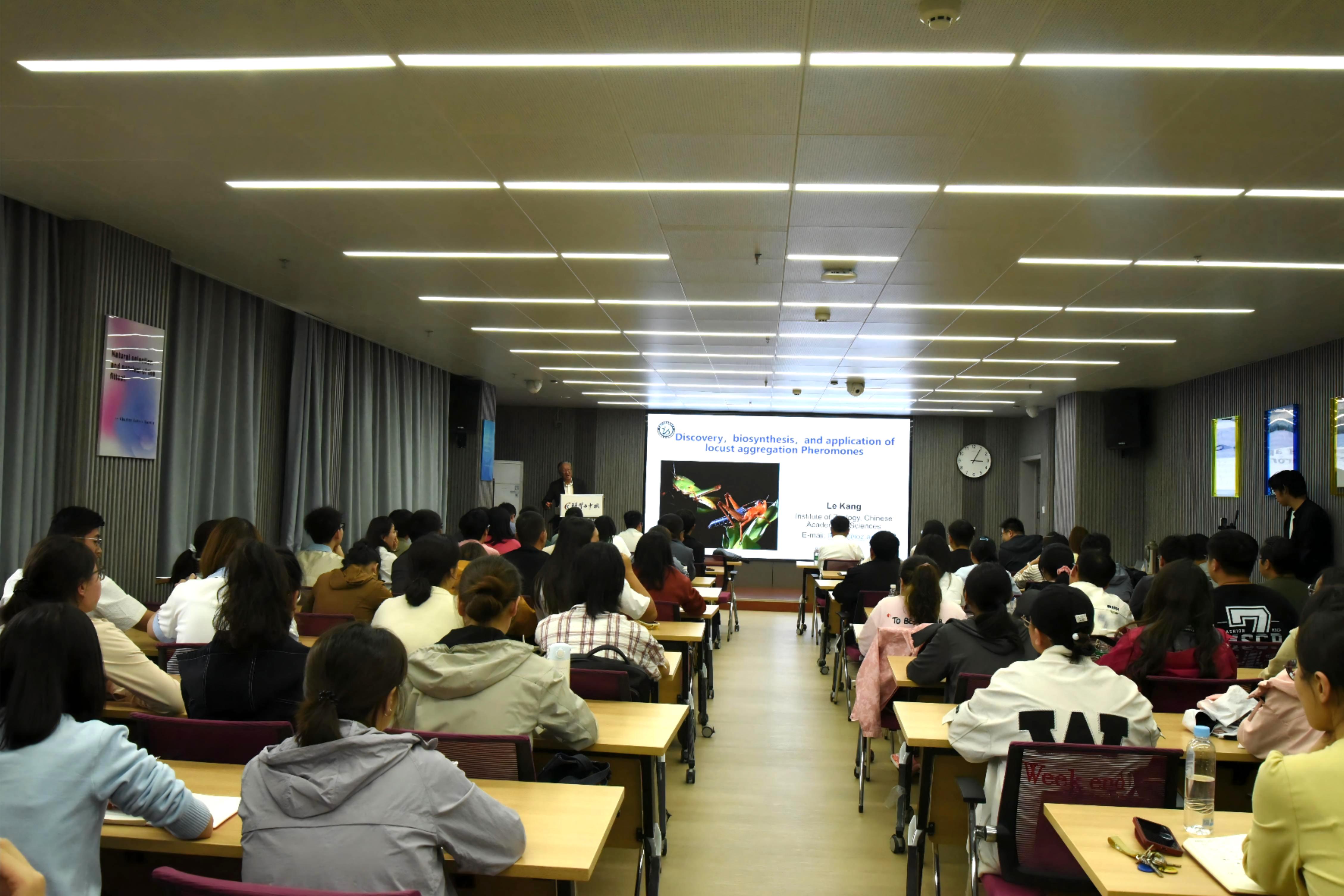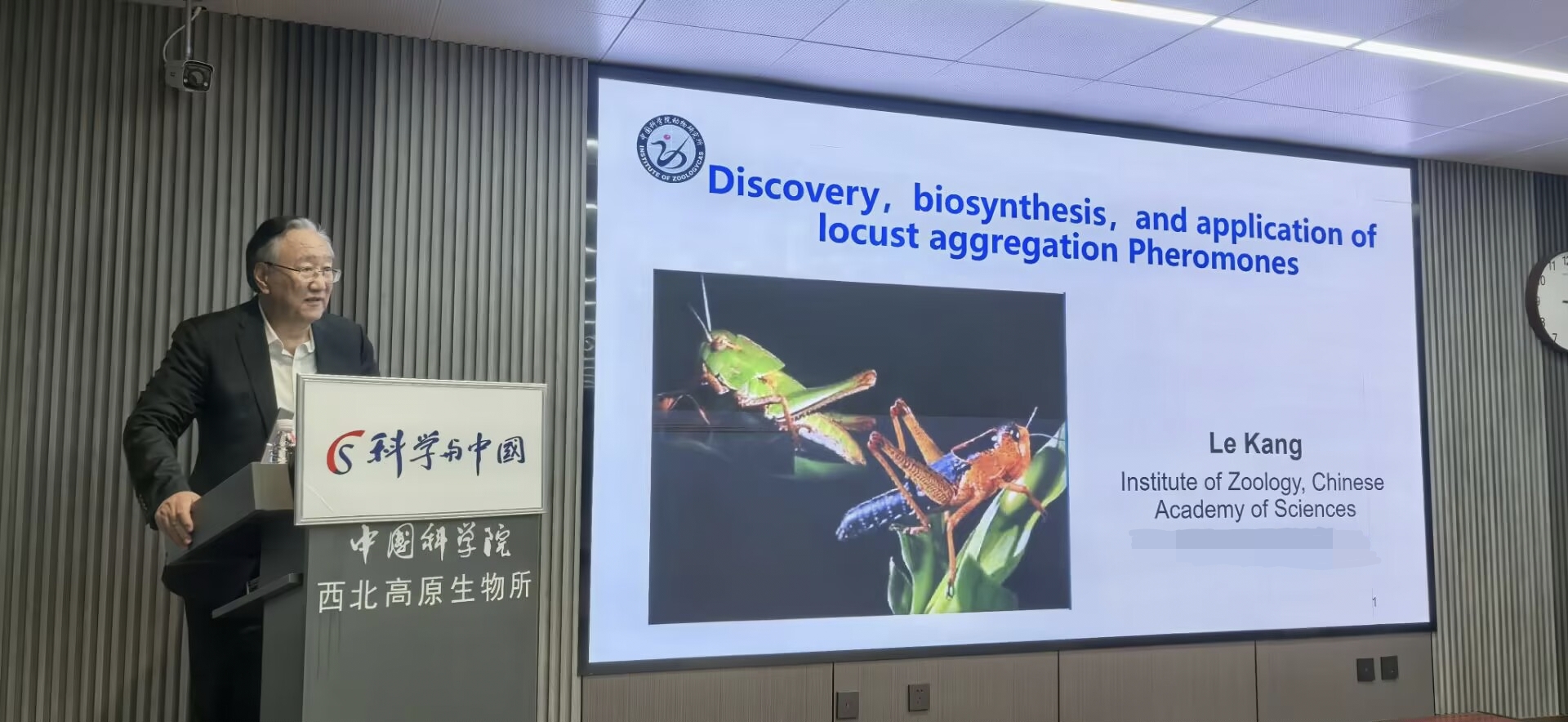 為領(lǐng)略科學(xué)前沿,拓展學(xué)術(shù)視野,點(diǎn)燃科學(xué)創(chuàng)新熱情,8月30日下午,中國科學(xué)院西北高原生物研究所舉辦了主題為“蝗蟲群聚信息素的發(fā)現(xiàn)、生物合成與應(yīng)用”學(xué)術(shù)報告會。中國科學(xué)院院士康樂受邀擔(dān)任主講嘉賓。西北高原所副所長楊其恩主持報告會并致辭,西北高原所所長陳世龍出席,辦公室主任王文娟,人事教育處副處長楊紅霞,以及百余名師生聆聽。
