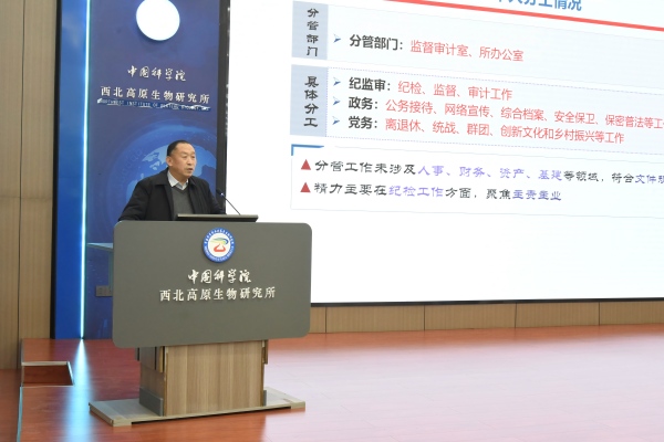 陳世龍所長代表所領(lǐng)導(dǎo)班子作了題為“扎根青藏高原 聚焦高原生物 保障生態(tài)安全”的2025年度工作總結(jié)和述職報(bào)告。報(bào)告詳細(xì)闡述了“十四五”完成情況,就深入學(xué)習(xí)貫徹黨的二十屆四中全會(huì)精神,貫徹落實(shí)2025年度院工作會(huì)議精神,聚焦院黨委重大決策部署,研究所重大科研項(xiàng)目進(jìn)展、高水平科研成果產(chǎn)出等內(nèi)容進(jìn)行匯報(bào),并對2026年重點(diǎn)工作進(jìn)行部署。