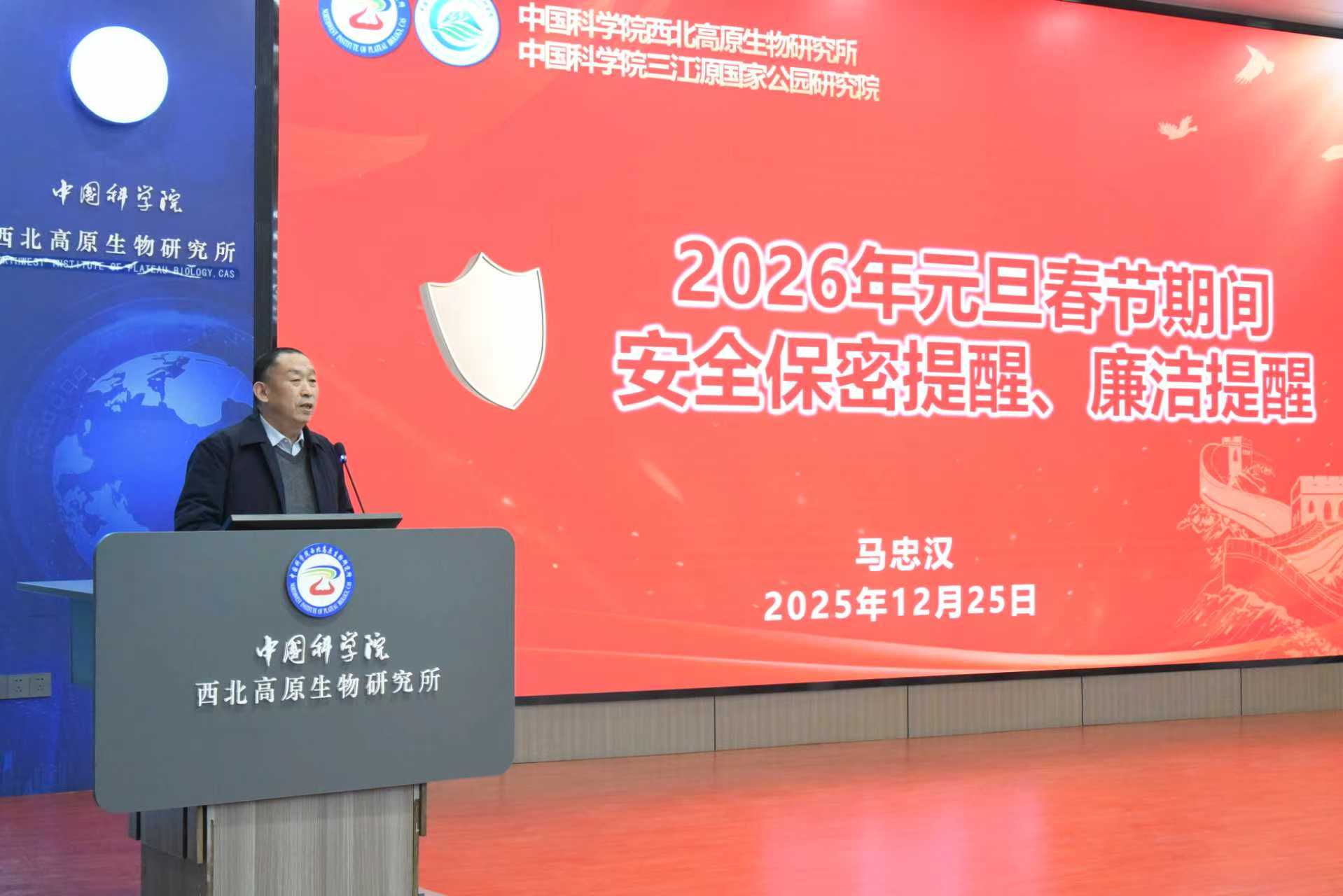 12月25日,中國科學(xué)院西北高原生物研究所召開2025年度工作總結(jié)大會(huì)暨領(lǐng)導(dǎo)班子考核會(huì)議。中國科學(xué)院蘭州分院副院長、分黨組成員趙培慶,人事人才處相關(guān)人員,西北高原所所長、黨委書記陳世龍,副所長魏立新、楊其恩,紀(jì)委書記馬忠漢以及全所在職職工、老專家老干部代表和研究生240余人參加了會(huì)議。會(huì)議由陳世龍主持。