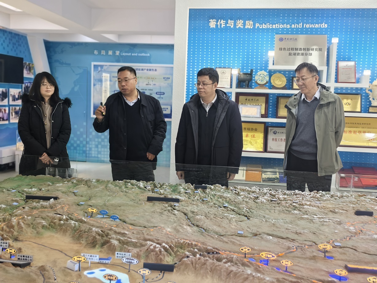 萬士林一行先后參觀了青海鹽湖所科技成果展廳及地質(zhì)與環(huán)境實(shí)驗(yàn)室展覽館,詳細(xì)了解了研究所的歷史沿革、科研平臺建設(shè)、人才隊(duì)伍構(gòu)成、重要科研成果及在鹽湖資源開發(fā)利用方面的研究進(jìn)展。