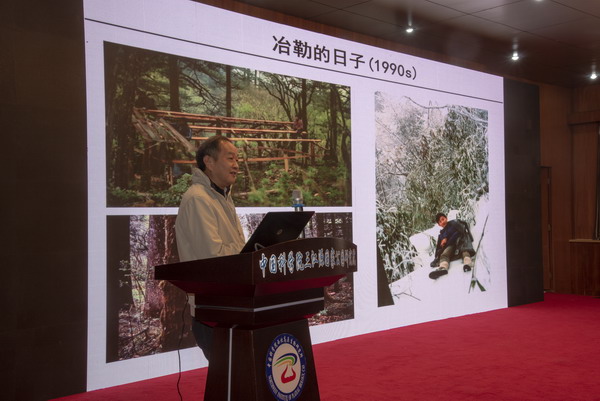 魏輔文院士以他的學(xué)術(shù)生涯為主線,講述了其自20世紀(jì)80年代開(kāi)始從事大熊貓的研究工作,從最初的大熊貓野外調(diào)查、觀察,到率先將種群基因組學(xué)、宏基因組學(xué)、比較基因組學(xué)等新技術(shù)應(yīng)用到大熊貓研究中,闡明了大熊貓的種群歷史、瀕危過(guò)程及演化潛力,揭示了大熊貓?jiān)谑承赞D(zhuǎn)換和特化歷程中如何在形態(tài)、行為、生理、遺傳和腸道微生物等方面產(chǎn)生適應(yīng)性演化的規(guī)律;闡明了棲息地破碎化導(dǎo)致大熊貓孤立小種群崩潰的機(jī)制,推動(dòng)了國(guó)家大熊貓放歸和棲息地廊道建設(shè)工程的實(shí)施。魏輔文首次提出“保護(hù)演化生物學(xué)”和“保護(hù)宏基因組學(xué)”新分支學(xué)科,并介紹了穩(wěn)定同位素分析技術(shù)和營(yíng)養(yǎng)幾何模型分析等新技術(shù)和新方法。魏院士結(jié)合自己30多年在保護(hù)生物學(xué)領(lǐng)域的經(jīng)歷,鼓勵(lì)大家在科學(xué)道路上堅(jiān)持思考,不斷探索,勇于創(chuàng)新。此次報(bào)告大大開(kāi)拓了與會(huì)人員的學(xué)術(shù)視野,鼓舞了廣大科技人員的科研熱情。