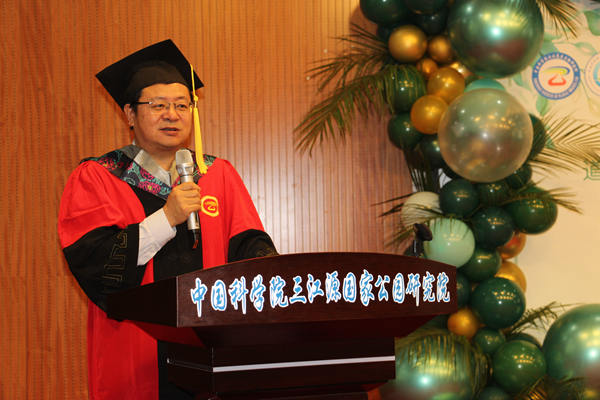 畢業(yè)典禮在莊嚴(yán)的國(guó)歌聲中拉開序幕。優(yōu)秀畢業(yè)生代表閆榮格博士首先發(fā)言。她代表全體畢業(yè)生懷著感恩的心和美好的希望,向培養(yǎng)他們的研究所和辛勤付出的導(dǎo)師們送上了最真摯的謝意和最美好的祝福。她說明年將是西高所建所60周年,在過去的數(shù)十年間,一批又一批科學(xué)家義無反顧地來到青海,扎根青海,克服困難,奉獻(xiàn)高原,為科學(xué)前沿、國(guó)家需求和地方發(fā)展做出了重大貢獻(xiàn),培養(yǎng)了一大批杰出的人才,很榮幸作為西高所的一份子,很榮幸,這里是大家的精神家園。在此出發(fā),胸懷夢(mèng)想不懈奮斗!