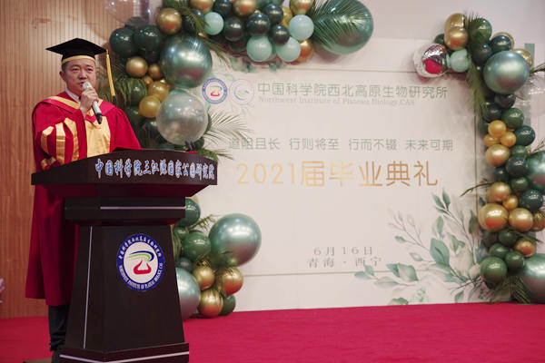 六月,綠意盎然,草長(zhǎng)鶯飛;六月,畢業(yè)別離,青春留影;六月,新的征程,期待滿懷。6月16日下午,中國(guó)科學(xué)院西北高原生物研究所2021屆研究生畢業(yè)典禮在學(xué)術(shù)報(bào)告廳舉行。所長(zhǎng)陳世龍、黨委書記張景光,副所長(zhǎng)楊其恩,管理部門負(fù)責(zé)人、優(yōu)秀導(dǎo)師代表、2021屆全體畢業(yè)生及畢業(yè)生家長(zhǎng)代表一同參加了典禮。畢業(yè)典禮由張景光主持。