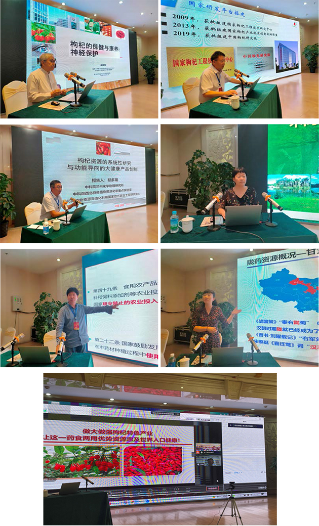 中國科學院院士、暨南大學蘇國輝教授,國家枸杞工程技術中心曹有龍研究員,蘭州化物所邸多隆研究員,中科院華南植物園王瑛研究員,中國醫(yī)學科學院藥用植物研究所徐常青研究員,蘭州大學胡芳弟教授和南京中醫(yī)藥大學郭盛副研究員分別作了題為“枸杞的保健與康養(yǎng)”“枸杞育種及新品種”“枸杞資源的系統(tǒng)性研究與功能導向的大健康產(chǎn)品創(chuàng)制”“枸杞重要性狀的分子機制及育種應用”“枸杞主要病蟲害種類及其發(fā)生規(guī)律與防治現(xiàn)狀”“枸杞大健康產(chǎn)業(yè)之路及含枸杞中藥口服液的開發(fā)”“分類施策,促進枸杞產(chǎn)業(yè)走多元化發(fā)展之路”的報告。