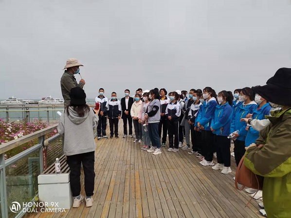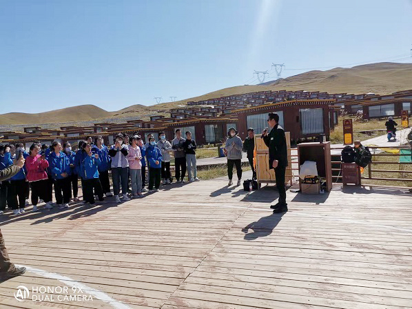在為期兩天的行程中,同學們先后參觀了青海湖和海北原子城紀念館,在老師的指導下學習如何樹立自信心,增強合作意識,了解與青藏高原相關(guān)的地質(zhì)地理知識,感受兩彈一星老科學家們無私奉獻和創(chuàng)新報國的精神等。此外,大家還分組團隊合作自己設計團隊游戲,展示個人才藝,氣氛融洽而熱烈。尤其是在展示個人才藝環(huán)節(jié)還發(fā)生了一個有趣而暖心的小插曲,同學們的歌舞表演不僅吸引了周圍游客的關(guān)注,也引起了一位從四川九寨溝遠道而來的藏族歌手的注意,這位歌手被同學們的表演所感染,用他特有的嗓音欣然為同學們演唱了他自己原創(chuàng)的歌曲,并鼓勵同學們努力學習,成為對國家對社會有用的人才。