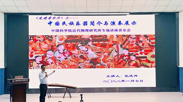 本次論壇以<走進(jìn)音樂廳>之中科院近代物理所新年民樂專場(chǎng)講座》為主題,報(bào)告人孔慶丹教授來自于西北師范大學(xué)音樂學(xué)院,報(bào)告人詳細(xì)介紹了包括笛、嗩吶、笙、二胡、琵琶、柳琴、阮、箏等在內(nèi)的多種傳統(tǒng)民間樂器,同時(shí)配以現(xiàn)場(chǎng)演奏的方式,使得大家認(rèn)識(shí)欣賞樂器的同時(shí)也深入了解了各類民樂的表現(xiàn)形式以及音樂廳文化,對(duì)民樂有了更加立體、直觀的認(rèn)識(shí)。報(bào)告結(jié)束,大家就如何提高個(gè)人藝術(shù)修養(yǎng)以及對(duì)青少年的音樂啟蒙教育等問題與主講人進(jìn)行了熱烈的探討和交流。