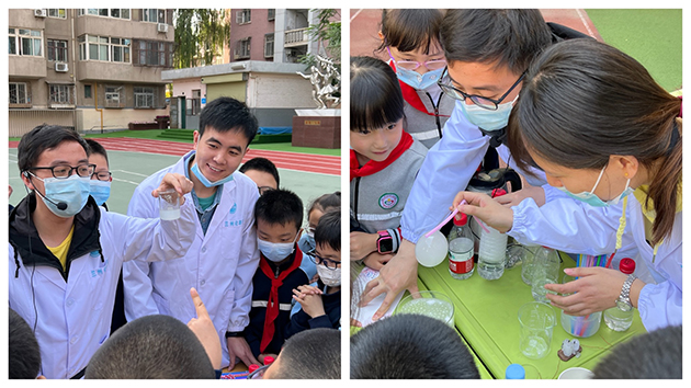 來自羰基合成與選擇氧化國家重點實驗室、固體潤滑國家重點實驗室、中科院西北特色植物資源化學重點實驗室和環(huán)境材料與生態(tài)化學研究發(fā)展中心的8名職工和研究生,開展了“CO2‘看得見’”系列互動實驗、“靜電‘吸引’‘懸浮’及釋放”實驗、“美麗的彩虹”系列實驗、“大象牙膏”實驗等4組實驗。他們用通俗易懂的語言介紹實驗用品和注意事項,結(jié)合生活中的現(xiàn)象講解實驗原理,認真仔細展示實驗步驟,現(xiàn)場答疑解惑,引導(dǎo)學生們自己動手去感受科學實驗的樂趣。