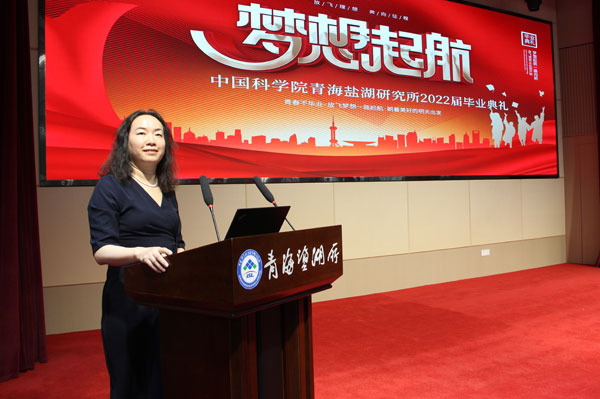 孫進(jìn)賀研究員作為導(dǎo)師代表發(fā)言,他向畢業(yè)生及導(dǎo)師們表示祝賀,祝愿大家在今后的道路上披荊斬棘、腳踏實(shí)地、砥礪前行。白露同學(xué)代表畢業(yè)生發(fā)言,表達(dá)了對(duì)國科大、對(duì)青海鹽湖所、對(duì)導(dǎo)師的感激與不舍,表示將牢記“鹽湖精神”,在今后的工作中努力做到艱苦奮斗、無私奉獻(xiàn)、團(tuán)結(jié)拼搏、開拓創(chuàng)新,把“鹽湖精神發(fā)”揚(yáng)光大,并祝愿青海鹽湖所越辦越好,再創(chuàng)佳績(jī)。