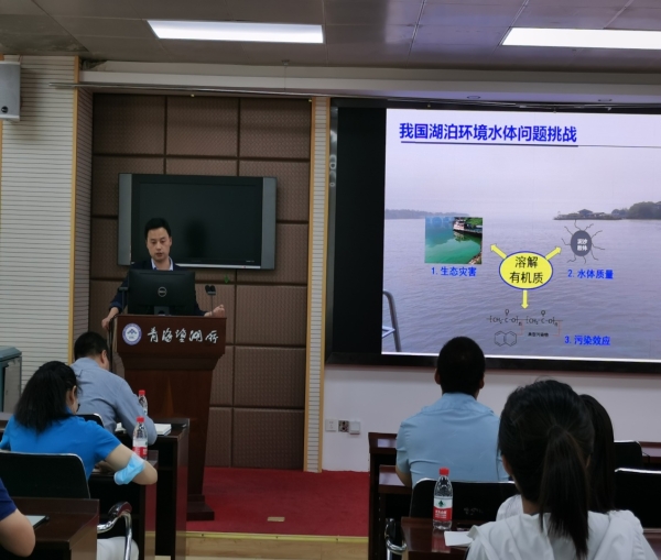 徐華成圍繞湖泊溶解性有機(jī)質(zhì)這一主題,作了題為“湖泊環(huán)境水體中溶解性有機(jī)質(zhì)及其行為效應(yīng)”的學(xué)術(shù)報(bào)告。重點(diǎn)介紹了在我國湖泊水環(huán)境諸多問題的嚴(yán)峻挑戰(zhàn)下,湖泊有機(jī)質(zhì)在水體中的環(huán)境行為和效應(yīng),并前瞻性地提出了湖泊水環(huán)境中溶解有機(jī)質(zhì)未來的研究熱點(diǎn)和研究方向,同時(shí)為鹽湖資源開發(fā)的大背景下鹽湖溶解有機(jī)質(zhì)的研究思路和內(nèi)容提供指導(dǎo)。