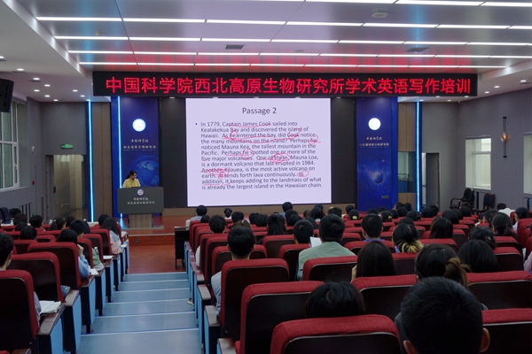 7月14日,中國科學(xué)院西北高原生物研究所學(xué)術(shù)英語寫作培訓(xùn)在1號樓學(xué)術(shù)報告廳舉行,此次培訓(xùn)特別邀請了中國科學(xué)院大學(xué)外語系于華教授、孟艷麗副教授和趙竹軒講師進(jìn)行授課,一百七十余名在職職工和研究生參加了此次培訓(xùn),培訓(xùn)活動由西北高原所副所長楊其恩主持。