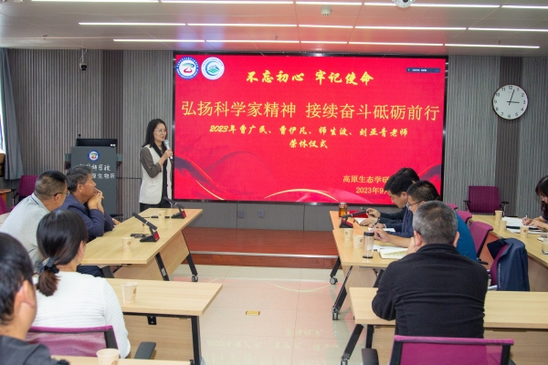 光陰荏苒,歲月如歌。從風(fēng)華正茂到兩鬢飛霜,三四十載輝煌歲月,他們用奉獻(xiàn)和汗水使高原生物研究事業(yè)蓬勃發(fā)展。如今,他們即將離開自己熱愛的工作崗位……。9月12日下午,一場以“弘揚(yáng)科學(xué)家精神,接續(xù)奮斗砥礪前行”為主題的退休職工榮休儀式在中國科學(xué)院西北高原生物研究所舉行,共同祝福四位榮休職工曹廣民、曹伊凡、師生波和劉亞青步入人生新階段。黨委書記、副所長張景光,副所長楊其恩,管理部門負(fù)責(zé)人,及生態(tài)中心在職職工和研究生50余人參加會議。會議由人事教育處副處長楊紅霞和高原生態(tài)學(xué)研究中心主任徐世曉主持。