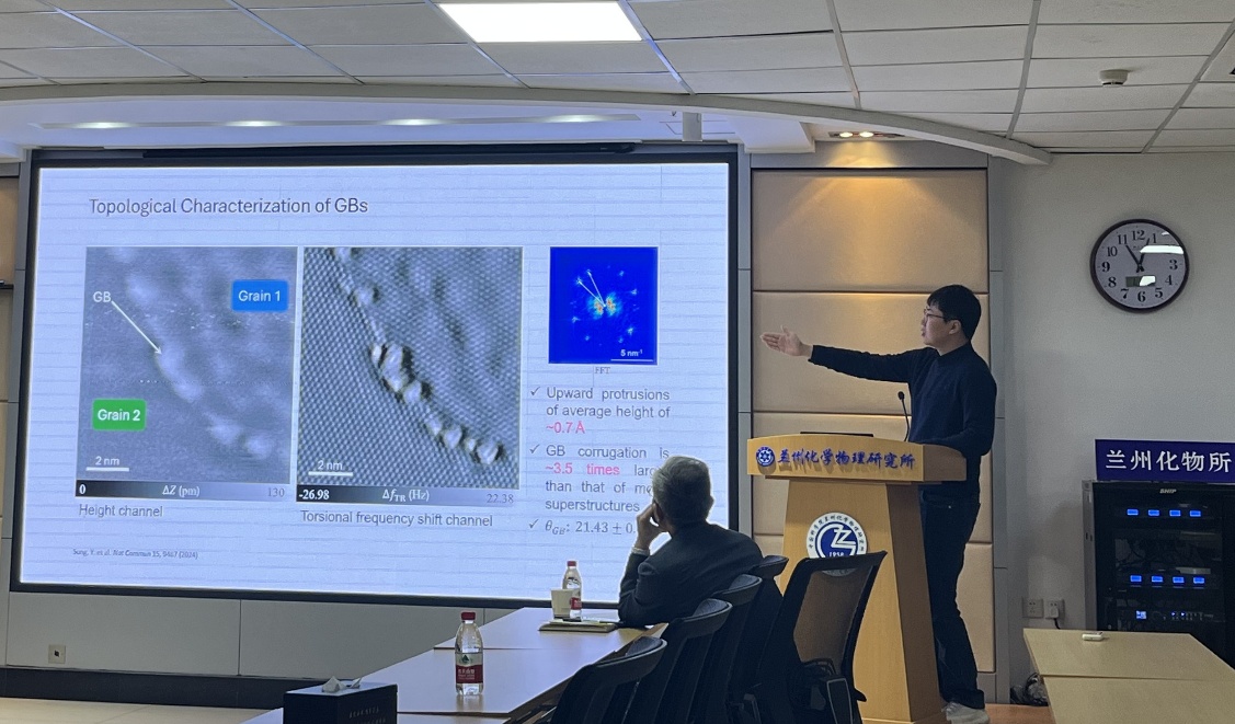 宋一鳴博士詳細解讀了石墨烯中不同尺寸晶格間的邊界表征,通過超高真空原子力顯微鏡實驗觀察到到晶界處的特殊粘滑現(xiàn)象,并結合模擬計算揭示了相應的能量耗散機制。相關研究成果已發(fā)表多篇學術論文。