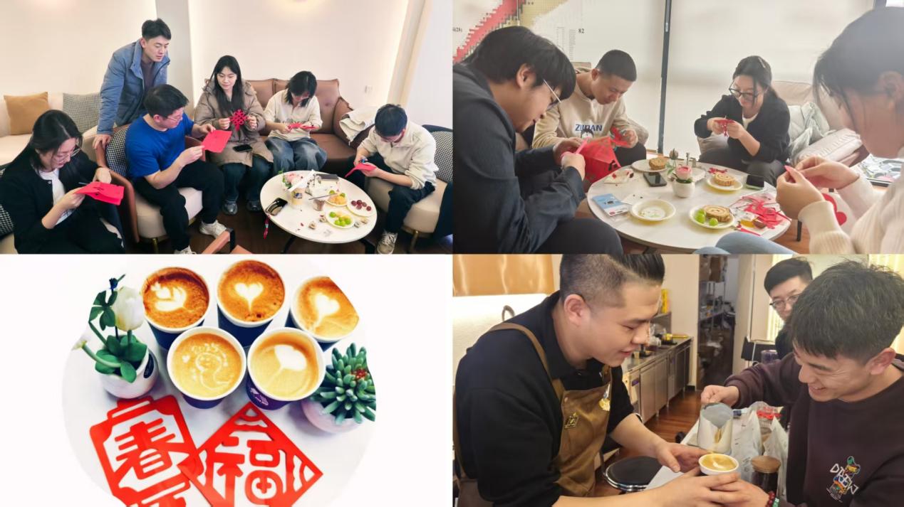 活動現(xiàn)場,同學(xué)們專注體驗剪紙的魅力、興奮展示各自的剪紙成果?,F(xiàn)場洋溢著濃厚的節(jié)日氛圍,每一片窗花、每一個“?!弊郑恳环菪履昙恼Z都承載著大家對新一年的美好期盼。隨后,大家在咖啡師的現(xiàn)場教學(xué)下投入到咖啡拉花制作,感受咖啡制作的樂趣。