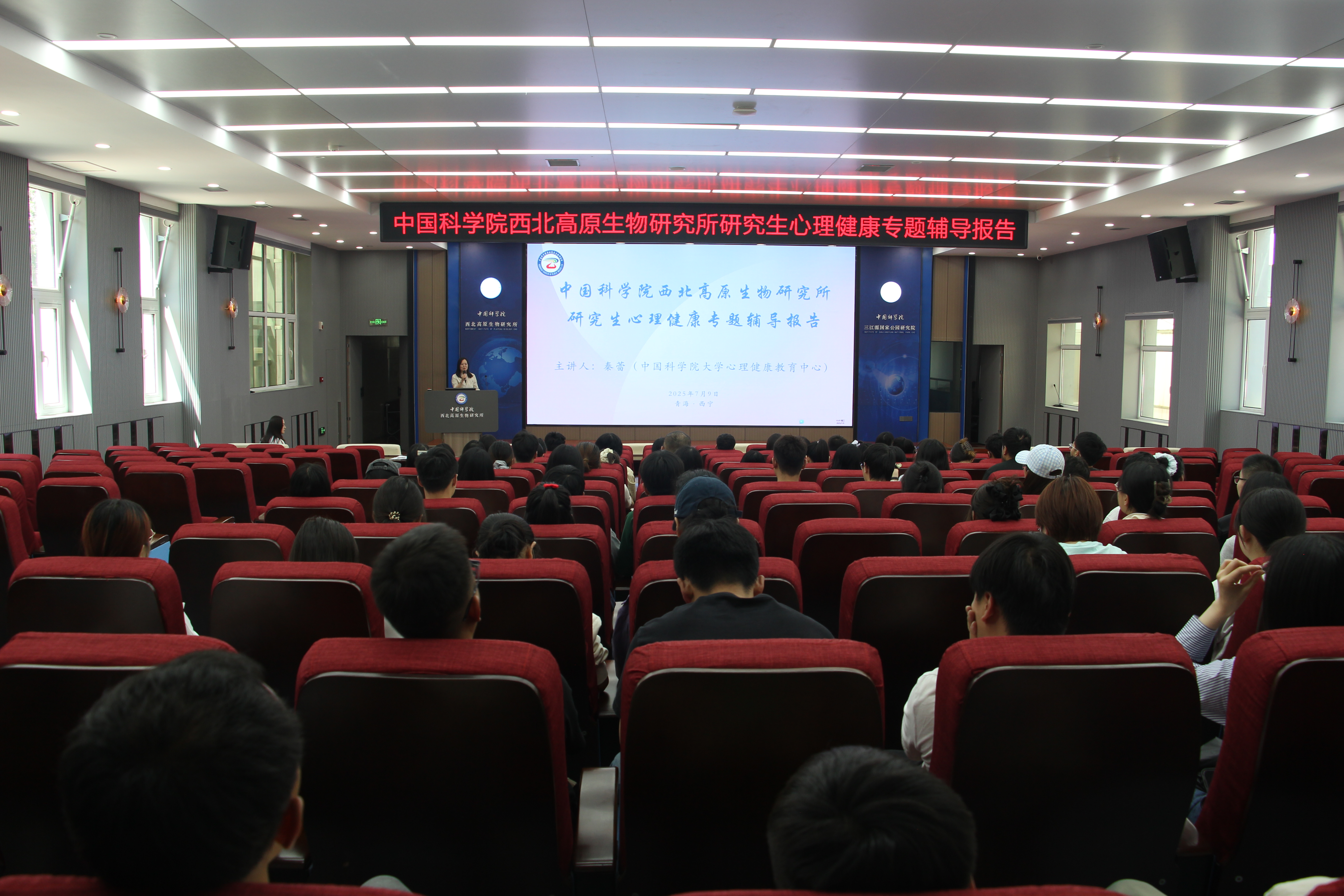 為提升在學(xué)研究生的心理健康意識,增強心理調(diào)適能力,營造積極健康的校園心理氛圍,7月9日下午,中國科學(xué)院西北高原生物研究所特舉辦研究生心理健康專題輔導(dǎo)報告會。本次活動由研究生辦公室主辦,報告邀請中國科學(xué)院大學(xué)心理健康教育中心講師秦蕾擔(dān)任主講嘉賓,我單位在學(xué)研究生及聯(lián)合培養(yǎng)研究生共112人參加了此次報告。