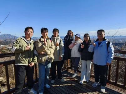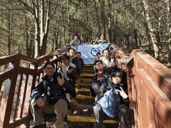 隊(duì)伍沿雁棲湖校區(qū)出發(fā),穿林越階,在陡坡與棧道交錯(cuò)間競速前行。觀景臺極目遠(yuǎn)眺,京北山色盡收眼底。一路上,陡坡棧道考驗(yàn)?zāi)土?,峰頂遠(yuǎn)眺開闊胸懷,梵音鐘鼓沉淀初心。大家相互攙扶、彼此等待,用腳步丈量自然,用笑聲縮短跨學(xué)科的距離。高強(qiáng)度的徒步為新“鹽湖人”注入了堅(jiān)毅、協(xié)作、沉靜的集體底色。在這片自然與人文交融的天地間,大家紛紛暢談科研志向,分享求學(xué)初心。“登高”不僅是為了望遠(yuǎn),更是為了“明志”——在高處審視自我,在廣闊中確立方向。有同學(xué)感慨:“科研之路正如登山,不在于一蹴而就,而在于持之以恒的積累與攀登?!?/span>