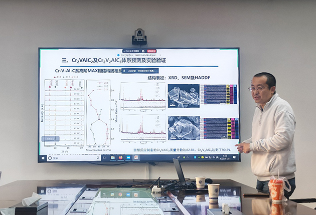 肖冰教授詳細介紹了神經網絡與迭代算法的結合應用,闡述了四元MAX陶瓷合成過程中涉及的微觀反應動力學和能量轉化機制。通過算法優(yōu)化,為MAX陶瓷的制備與應用提供了全新的理論指導,為四元MAX陶瓷的合成工藝帶來了突破性的技術支持。