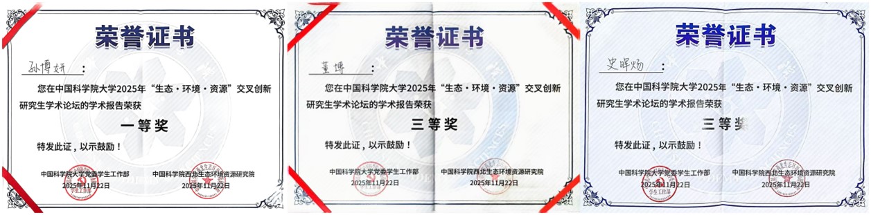 論壇設(shè)置“生態(tài)與環(huán)境領(lǐng)域組”“資源與工程領(lǐng)域組”及“弘揚(yáng)科學(xué)家精神與研究生思政教育管理研討組”三大專(zhuān)題板塊,聚焦國(guó)家戰(zhàn)略需求與科技前沿,推動(dòng)學(xué)科融合與協(xié)同創(chuàng)新。青海鹽湖所研究生緊扣青藏高原生態(tài)安全屏障、柴達(dá)木盆地資源高效利用與環(huán)境保護(hù)等關(guān)鍵科學(xué)問(wèn)題等多個(gè)方向進(jìn)行學(xué)術(shù)報(bào)告和墻報(bào)展示。現(xiàn)場(chǎng)討論熱烈,學(xué)術(shù)氛圍濃厚。通過(guò)這一高水平平臺(tái),青海鹽湖所研究生不僅展示了最新的科研進(jìn)展,更與兄弟院所建立了深入的學(xué)術(shù)聯(lián)系,為后續(xù)合作奠定了良好基礎(chǔ)。參會(huì)研究生們憑借出色表現(xiàn),成績(jī)斐然。孫博妍榮獲優(yōu)秀學(xué)術(shù)報(bào)告一等獎(jiǎng);董博與史暉煬榮獲優(yōu)秀學(xué)術(shù)報(bào)告三等獎(jiǎng);馬智超、甄璐菲、盧文薇的墻報(bào)榮獲優(yōu)秀墻報(bào)獎(jiǎng)。