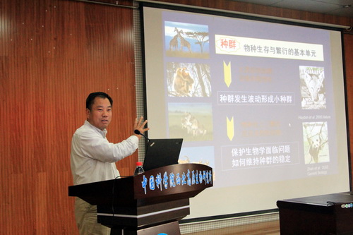 本次論壇共安排11個特邀報告。中國科學院院士、中國科學院水生生物研究所研究員桂建芳,中國科學院動物研究所研究員蔣志剛、王德華、雷富民、杜衛(wèi)國、詹祥江,西北大學教授李保國、中國科學院昆明動物研究所研究員施鵬、東北林業(yè)大學教授張明海、山東大學教授李玉春、西北高原所研究員楊其恩分別作了題為“多倍體銀鯽及其復合種的生態(tài)分布格局與演化歷史”、“未雨綢繆、亡羊補牢:量化中國哺乳動物滅絕風險”、“生理生態(tài)學與動物保護:學科地位與發(fā)展的思考”、“應對第四紀冰期和氣溫變化的鳥類譜系地理學過程”、“生態(tài)生理學與保護:以爬行動物溫度響應為例”、“Reference genome, population genetics and population genomics of wild falcons”、“環(huán)境變化下的秦嶺金絲猴社群結(jié)構(gòu)”、“基因組時代下的生物多樣性資源挖掘”、“基于糞便分子生物學及3S技術的馬鹿家域研究”、“我國小型哺乳動物物種多樣性的低估與保護迫切性”和“配子體外生產(chǎn)技術在畜牧生產(chǎn)和野生動物保護中的應用潛力和挑戰(zhàn)”的報告。精彩絕倫的報告引起了與會代表的極大興趣,大家認真傾聽、踴躍發(fā)言,展開了熱烈的交流與討論,現(xiàn)場氣氛異?;钴S。