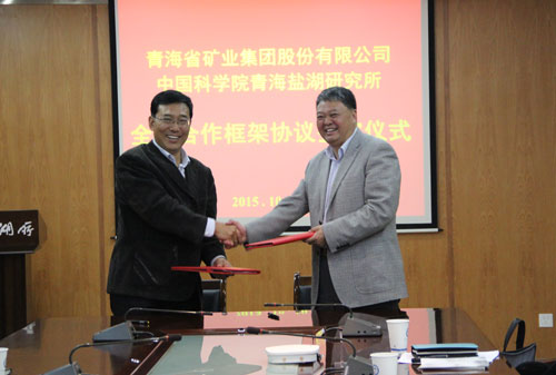 10月10日下午,青海省礦業(yè)集團(tuán)股份有限公司董事長(zhǎng)曹大嶺一行5人到青海鹽湖所訪問交流,青海鹽湖所主持工作的副所長(zhǎng)段東平和青海省礦業(yè)集團(tuán)股份有限公司董事長(zhǎng)曹大嶺代表各自單位簽署了全面合作框架協(xié)議。青海省礦業(yè)集團(tuán)股份有限公司副總經(jīng)理蘆滿吉、技術(shù)管理部部長(zhǎng)汪根存等和青海鹽湖所部分中層干部、科研人員參加了交流座談和簽字儀式。