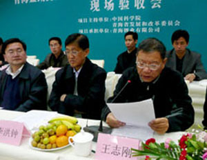 高技術(shù)產(chǎn)業(yè)化示范工程現(xiàn)場驗收會在西寧召開。會議由中國科學院計劃局副局長潘鋒主持,青海省人民政府副秘書長鐘通蛟,中國科學院基本建設(shè)局副局長王志剛,中國科學院蘭州分院副院長楊生榮,青海省海西州人民政府副州長劉小秦,西部礦業(yè)集團公司總裁白永強,青海鹽湖研究所所長馬海州、黨委書記胡彥明和來自中國科學院、青海省政府、海西州政府及各相關(guān)單位的四十多位代表參加了會議。