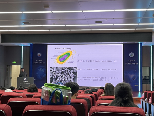 25日下午,西北高原所副研究員邢睿為前來參加活動的五四小學(xué)師生作了題為“微生物探秘”的講座。講座從科普的角度講解了微生物的概念及他們的重要生態(tài)功能;從伴隨人類社會發(fā)展歷程的角度,闡述微生物在人類發(fā)展過程中起到的的重要作用;隨后介紹了青海省尤其是祁連山國家公園大型真菌的分布、組成及野外真菌識別的基本知識。隨后,邢睿還帶領(lǐng)五四小學(xué)師生參觀學(xué)習(xí)了青藏高原生物標(biāo)本館。