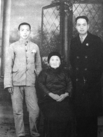 1937年施雅風(fēng)(左一)與母親和哥哥的合影